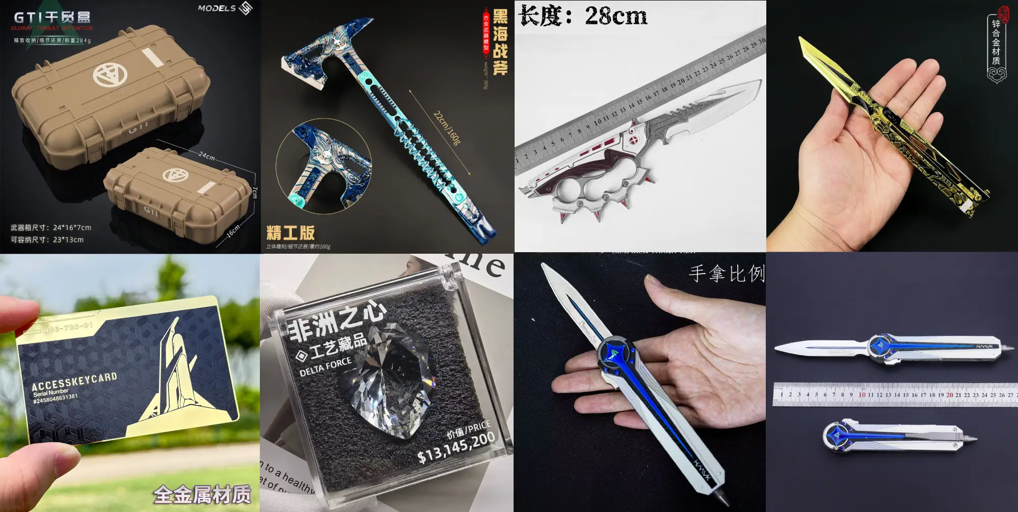 Tại Shop Acc DELTAFORCE.SKIN, bạn có thể sở hữu ngay những mô hình dao và súng trong Delta Force được thiết kế theo phong cách trong game: sắc nét, chân thật và đẹp đến từng chi tiết. Mỗi sản phẩm đều được làm từ chất liệu cao cấp, cầm chắc tay, thích hợp để trưng bày, sưu tầm hoặc làm quà tặng cho game thủ yêu thích Delta Force.